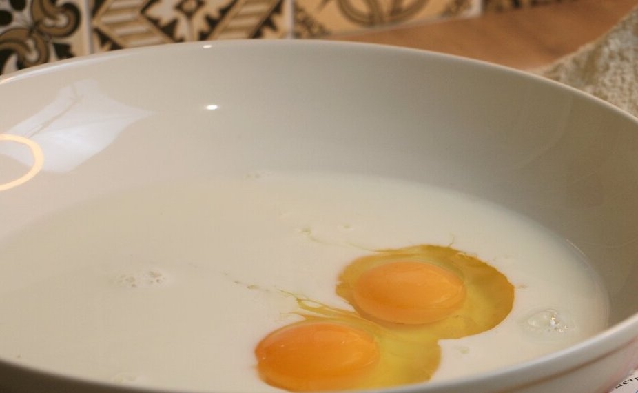 Przed roztopieniem masła pozwól mu ostygnąć do temperatury pokojowej. Osobno podgrzej mleko, aż będzie ciepłe. Nie gotuj! W misce połącz mleko, cukier i sól. Mieszaj je do całkowitego rozpuszczenia. Wmieszaj jajka i masło.