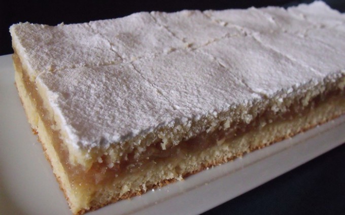 Przygotuj blachę do pieczenia o wymiarach 24×36 cm. Pierwszą warstwę ciasta należy ułożyć na spodzie. Przykryć ją nadzieniem jabłkowym. Drugą warstwę ciasta należy położyć na wierzchu. Na wierzchu ułożyć drugą warstwę ciasta. Całość piec w temperaturze 200°C przez 45 minut.
