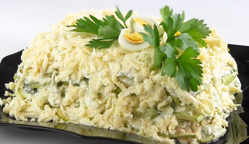 Następnie powtarza się tę czynność, wykorzystując resztę cukinii. Wierzch ciasta smaruje się resztkami sosu, można go także udekorować za pomocą świeżych ziół.