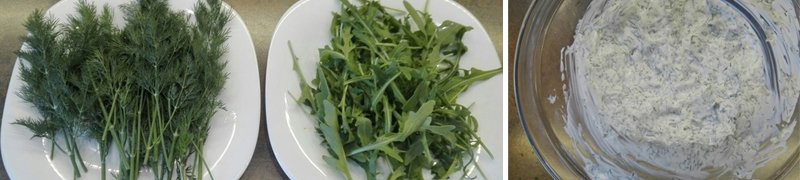 W trakcie pieczenia warto przygotować sos. Miesza się w tym celu jogurt, przyprawy, rukolę, zioła oraz czosnek.