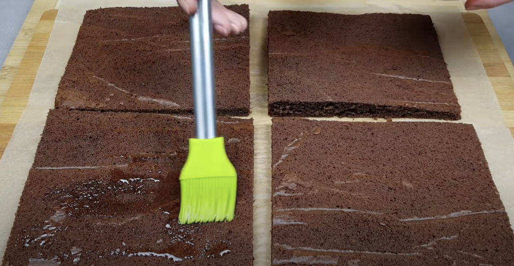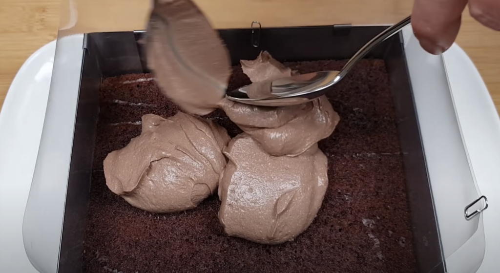 Teraz pozostaje tylko połączyć wszystko w całość. Rozsmaruj 1/3 kremu na jednej połowie tortu. Na wierzchu rozsmarować 1/3 kremu. Przykryj tort drugą częścią i lekko dociśnij. Kontynuuj układanie warstw na całym torcie w ten sposób. Gdy wszystko będzie gotowe, wstawić do lodówki.