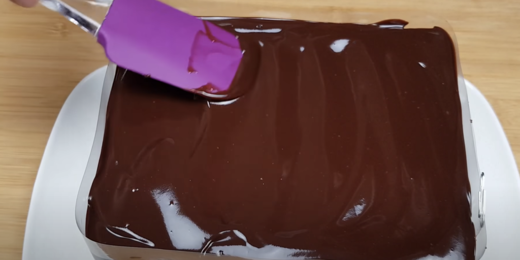 W tym czasie przygotuj polewę: Wlej mleko do małego rondelka, dodaj masło i podgrzej do wrzenia. Następnie połam czekoladę i dodaj ją do gorącego mleka. Mieszaj, aż czekolada się rozpuści. Pozwól ciastu ostygnąć, a następnie polej je polewą. Teraz możesz pokroić ciasto w plastry i podawać.