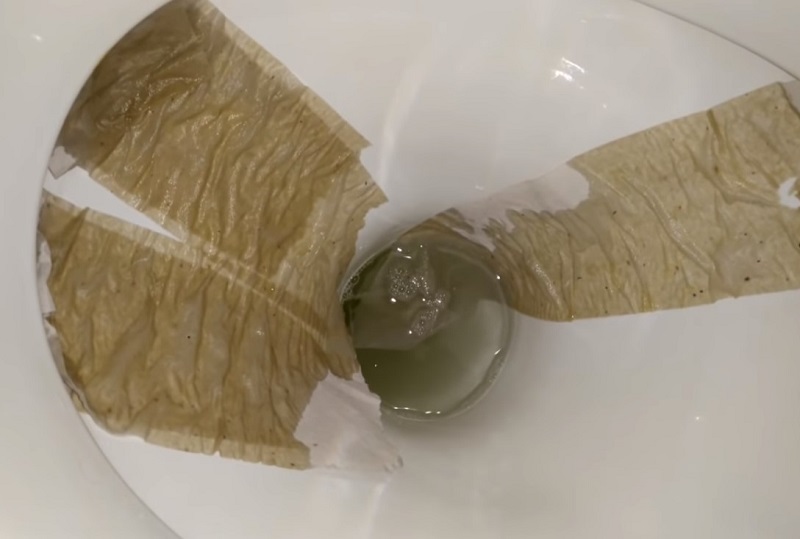 Papier toaletowy „przyklej” (tak, żeby nie spadał na dno muszli) do ścianek muszli klozetowej i nasącz go swoim sprawdzonym środkiem czyszczącym. Tak nasączony i przylepiony papier pozostaw w toalecie na kilka godzin, jeżeli masz możliwość to na dzień, lub noc.