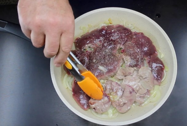 Doprawić solą i pieprzem. Nie dodawaj soli przed usmażeniem wątróbki.
