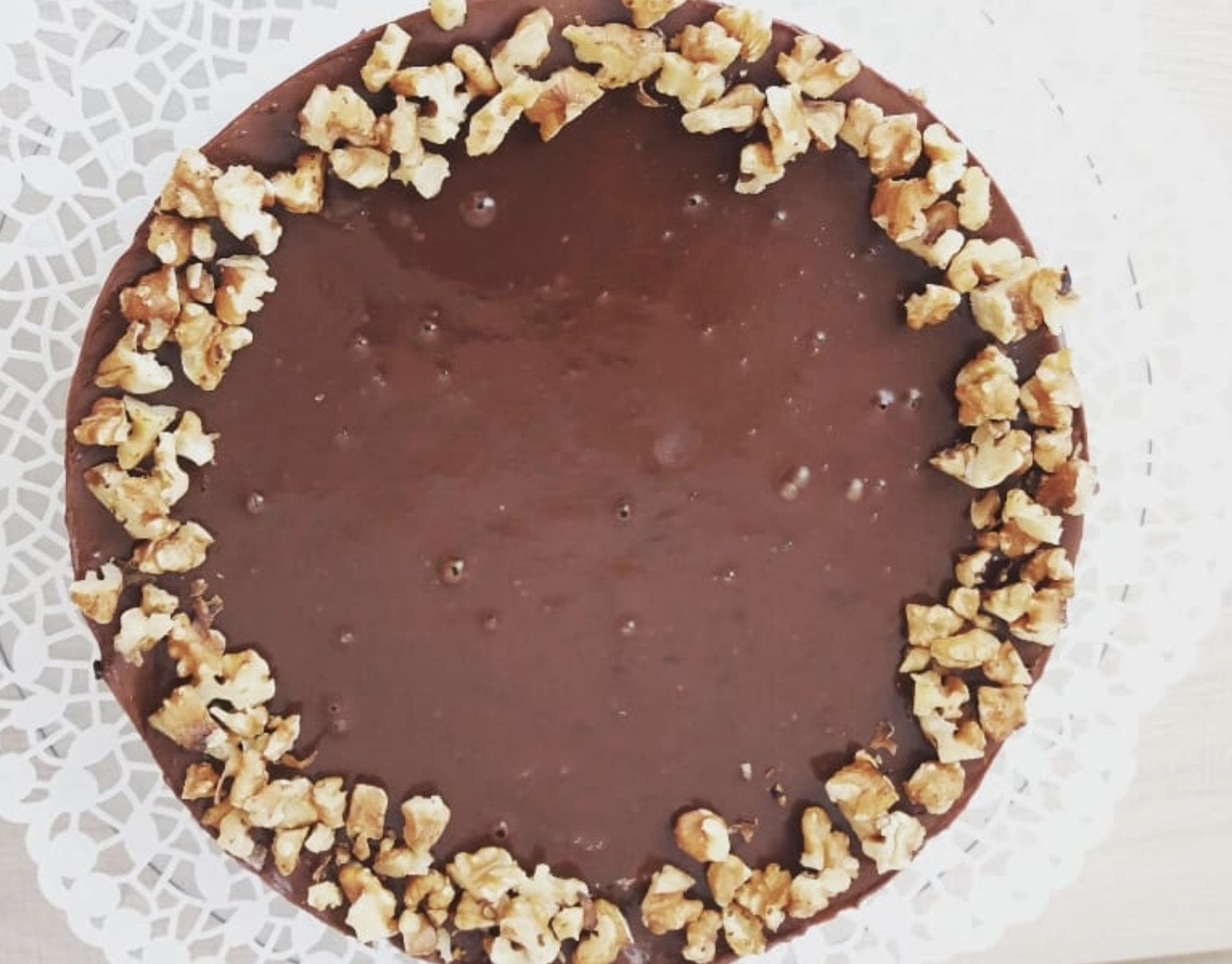 - Na koniec przygotuj polewę gotując kakao, cukier, śmietanę i masło. Po schłodzeniu deseru wyjmij z formy, polej polewą i wygładź. Ozdób według uznania. Teraz deser jest gotowy do pokrojenia i podania.