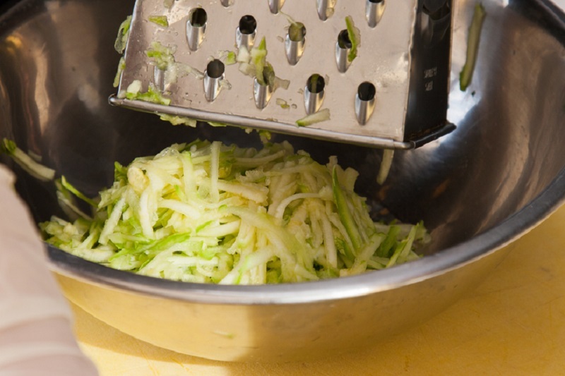 Przygotuj tarkę i po dokładnym umyciu cukinii zetrzyj ją na tarce. Nie obieraj jej ze skórki.