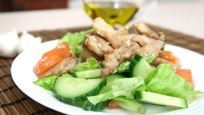Mięso pokrój na niewielkie kawałki. Umieść je w sosie sojowym z czosnkiem i marynuj przez około 20 minut. Smaż na rozgrzanym oleju, aż mięso nabierze złocistego koloru.