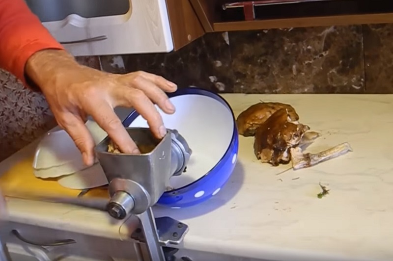 Przemiel grzyby przez maszynkę. Pamiętaj, by nie myć ich wcześniej. Powstałą w ten sposób masę rozcieńcz niewielką ilością wody i umieść w pojemniku.