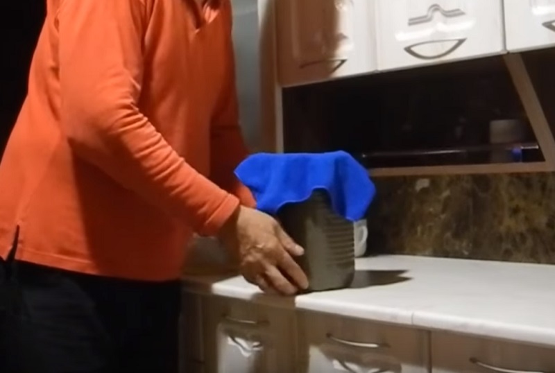 Dodaj drożdże i całość delikatnie wymieszaj. Następnie dolej do masy pozostałą ilość wody. Pojemnik nakryj czystą i suchą ściereczką i odstaw na 2 tygodnie w ciepłym i ciemnym miejscu.