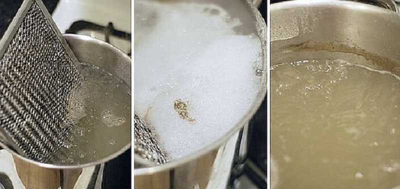 Jeśli tłuszczu i sadzy nie można usunąć w ten sposób, spróbuj zagotować kratkę w roztworze.
