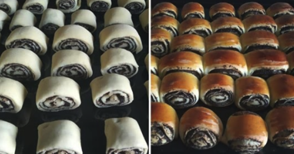 Wcześniej przygotowane ciasto podzielić na równe części. Rozwałkować każdą z nich do owalnego kształtu oraz posmarować nadzieniem. Gotowe kawałki z nałożonym nadzieniem zwinąć na kształt rulonu, a następnie pokroić na równe części. Blaszkę przed nałożeniem ślimaczków należy posmarować olejem słonecznikowym, by nie przywierały.