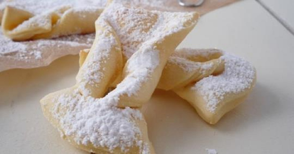 Po schłodzeniu, ciasto rozwałkowujemy cienko na stolnicy, kroimy w paski o wymiarach 3 cm na 10 cm. W każdym pasku robimy nacięcie i przewlekamy przez nie jeden z końców, formując węzeł i charakterystyczny kształt faworka. Układamy na blasze pokrytej papierem do pieczenia, pieczemy w 180 °C przez 10 – 12 minut.