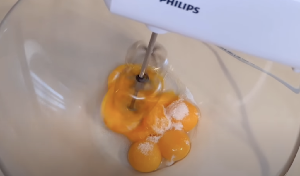 Powoli wlej syrop cukrowy do żółtek. Ubij wszystkie składniki razem.