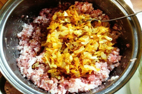 Kapustę należy następnie opłukać zimną wodą i oddzielić od siebie liście. Następnie ryż gotujemy na półtwardo,a cebulę i marchew drobno siekamy, następnie podsmażam na patelni. Warzywa należy potem zdjąć z ognia i ostudzić.