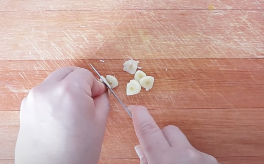 Z czosnku można usunąć skórki, a następnie pokroić go na małe kawałki. Umieść kawałki w misce, a następnie dodaj trochę wody.