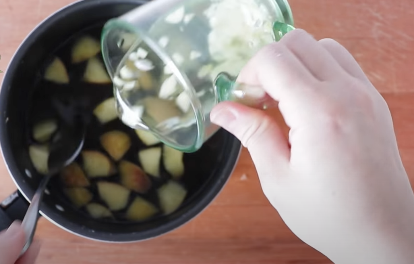 Do przygotowania aromatycznego napoju potrzebne są 3 ząbki czosnku plus 1 jabłko. Ta mieszanka doskonale łagodzi silny aromat i smak czosnku, nie tracąc jego naturalnych właściwości.
