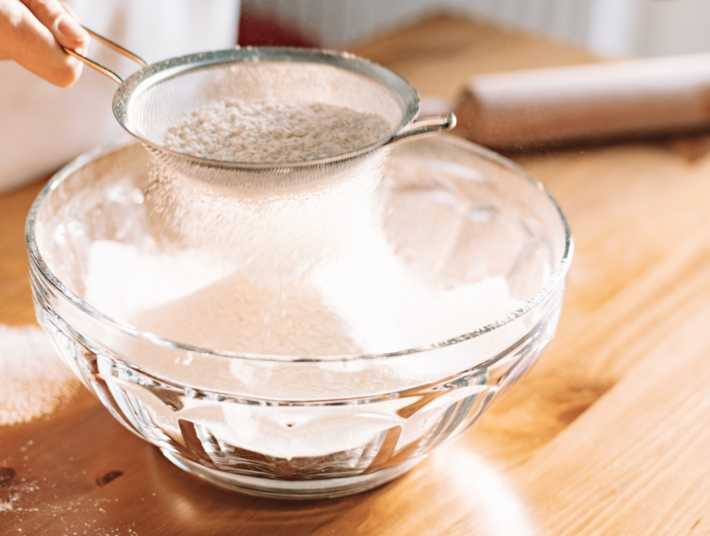 Po rozpuszczeniu pozwól mieszaninie trochę ostygnąć. Przesiej mąkę, proszek do pieczenia i cukier puder do letniej mieszanki miodu. Dodać lekko ubite jajko i wymieszać łyżką. Mieszamy dokładnie, ale delikatnie, aby zachować powietrze w mieszance, a co za tym idzie również puszystość.