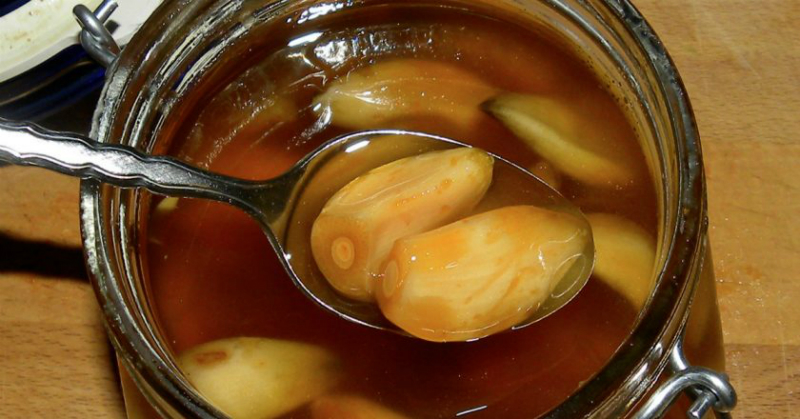 Połączenie miodu i czosnku sprawia, że oba produkty działają jednocześnie przeciwwirusowo oraz przeciwbakteryjnie, ale również pomagają w walce z kaszlem. Obierz czosnek, namocz go w miodzie, a następnie, pozostaw w tej postaci na jeden dzień. Taką gotową miksturę jedz przed snem, codziennie po jednej łyżeczce.
