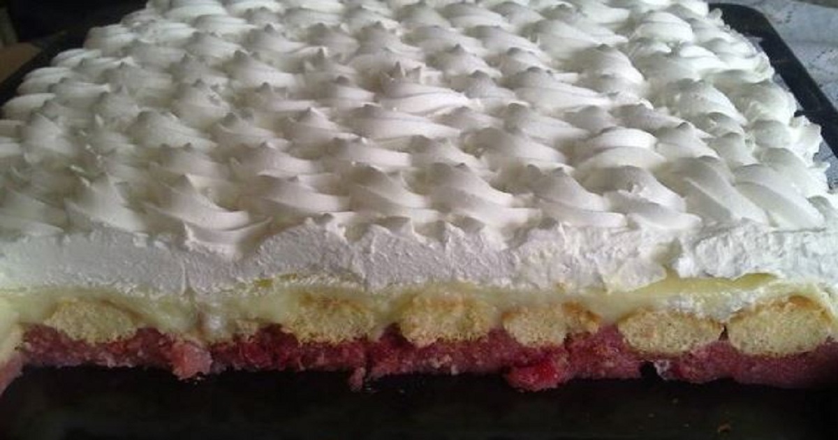 Przygotowujemy budynie z użyciem mleka. Ciepłym budyniem zalewamy biszkopty i czekamy do wystygnięcia. Śmietanę 30% ubijamy na sztywno z cukrem, a następni układamy na wierzchu ciasta.