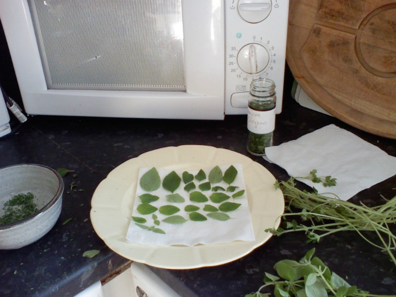 W tym celu doskonale sprawdzi się kuchenka mikrofalowa. Liście mięty lub szałwii możesz rozłożyć na talerzu nakrytym ręcznikiem papierowym. Używaj średniej mocy w dwudziestosekundowych odstępach.