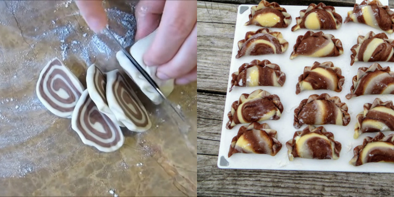 Szykując pierogi na słodko, podziel ciasto na dwie części i dodaj do jednej z nich kakao.
