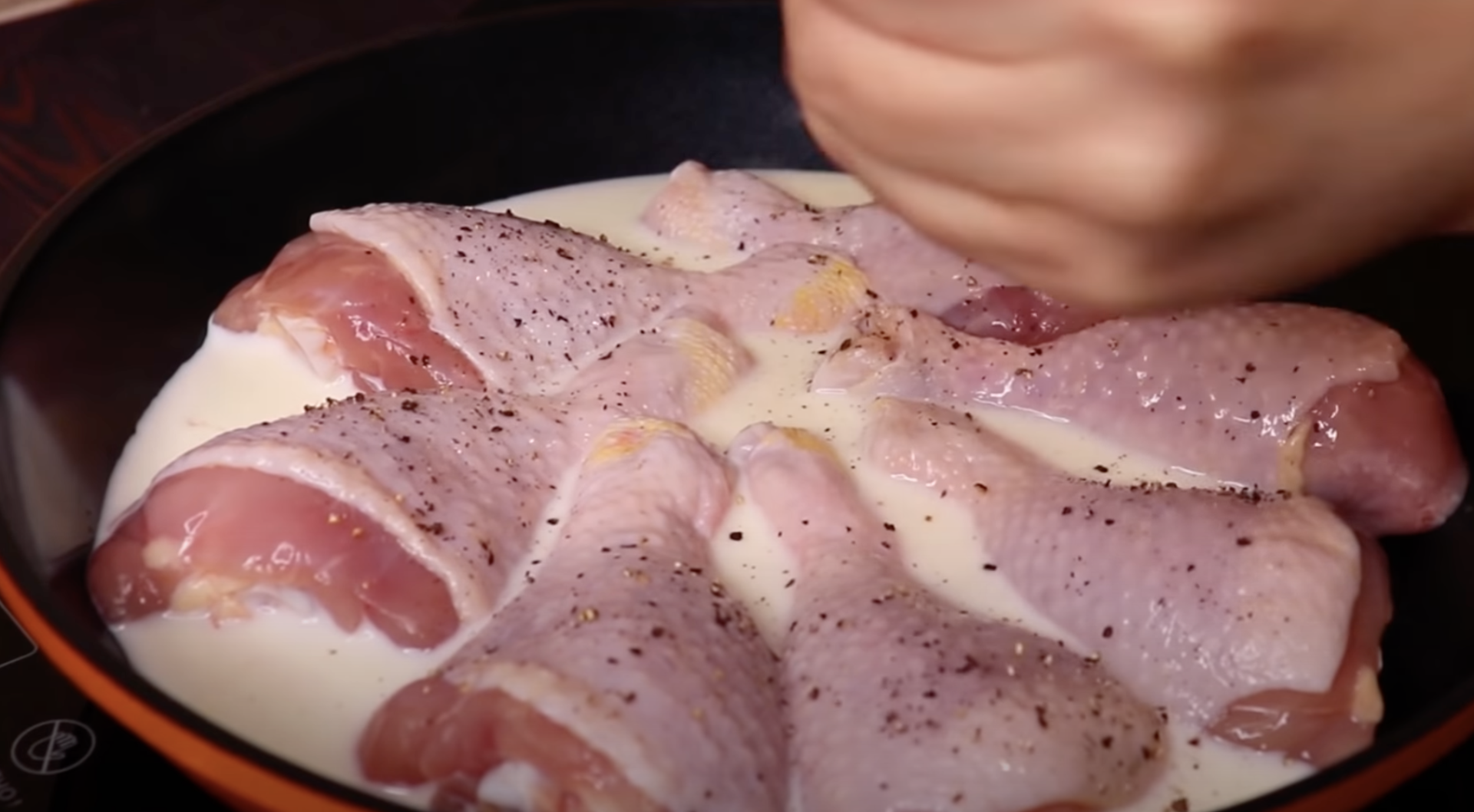 Dobrze umyj udka z kurczaka i osusz je ręcznikami papierowymi. Weźmy głębszy garnek, włóż do niego mięso. Zalej je mlekiem i wodąDopraw solą i pieprzem.