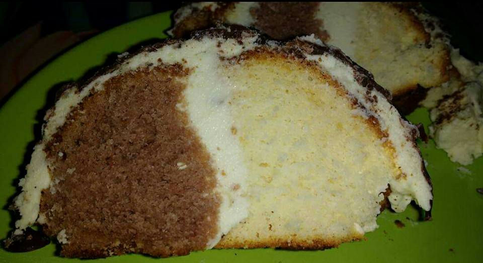 Po przesianiu mąki, połącz ją z proszkiem do pieczenia. Następnie, delikatnie połącz ją z ubitą pianą z żółtek, dodając do niej mąkę i delikatnie mieszając. Następnie, dołóż do jednej połowy ciasta kakao i wymieszaj. Ciasto należy wlać do dwóch form: jednej posmarowanej tłuszczem i posypanej mąką, drugiej – z dodatkiem kakao.