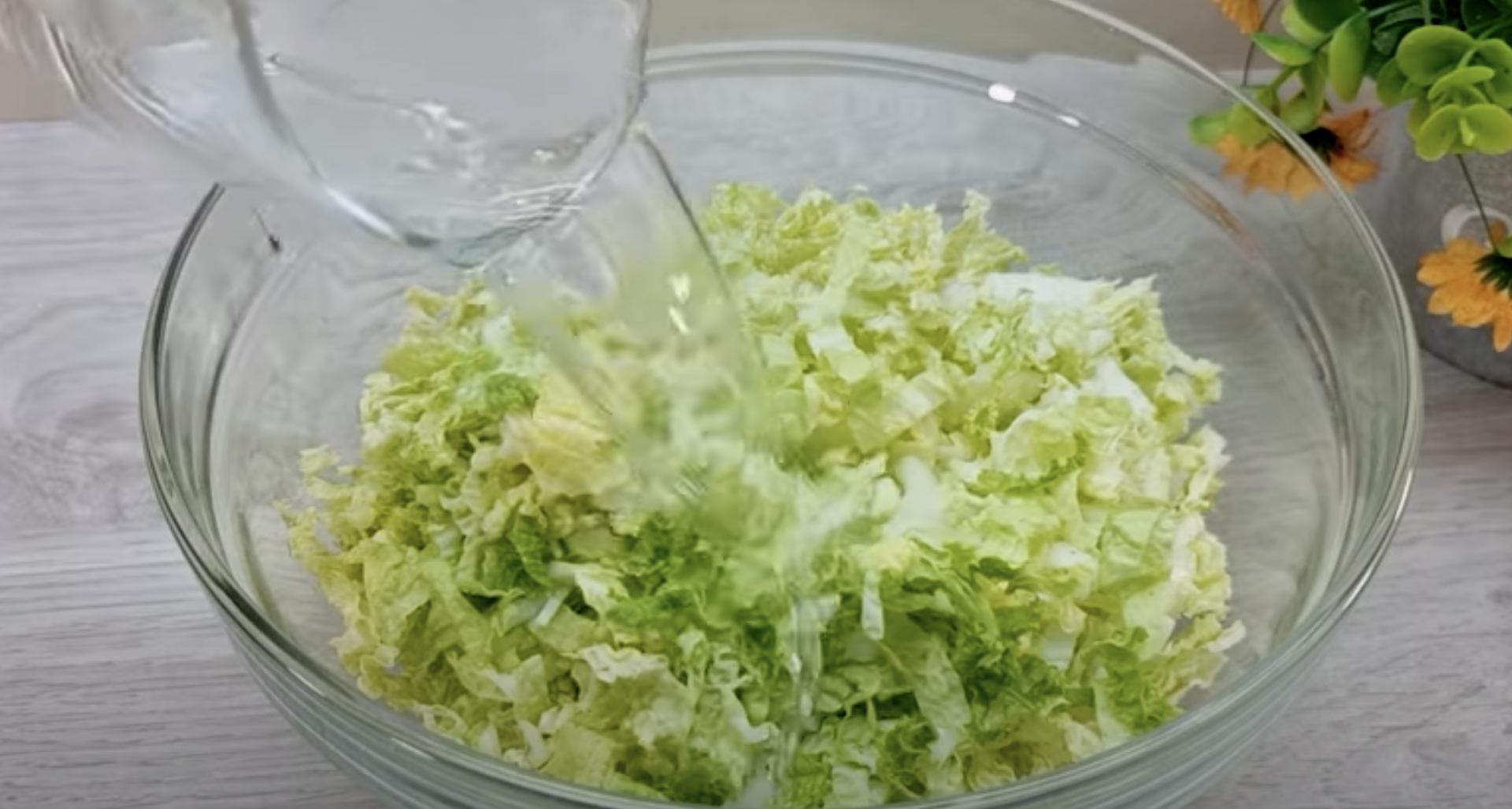 Posiekaj drobno kapustę, a następnie dodaj ją do gotującej się wody. Wymieszać. Pozostawić do ostygnięcia na kilka chwil.