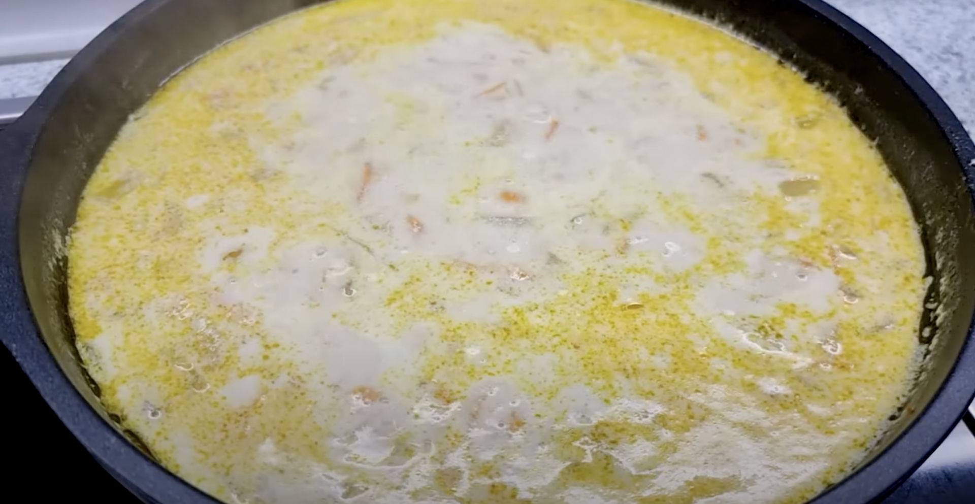 Marchewki gotować w rondlu przez 5 minut. Wymieszaj 2 ząbki czosnku z 200 g kwaśnej śmietany i 500 ml wody.