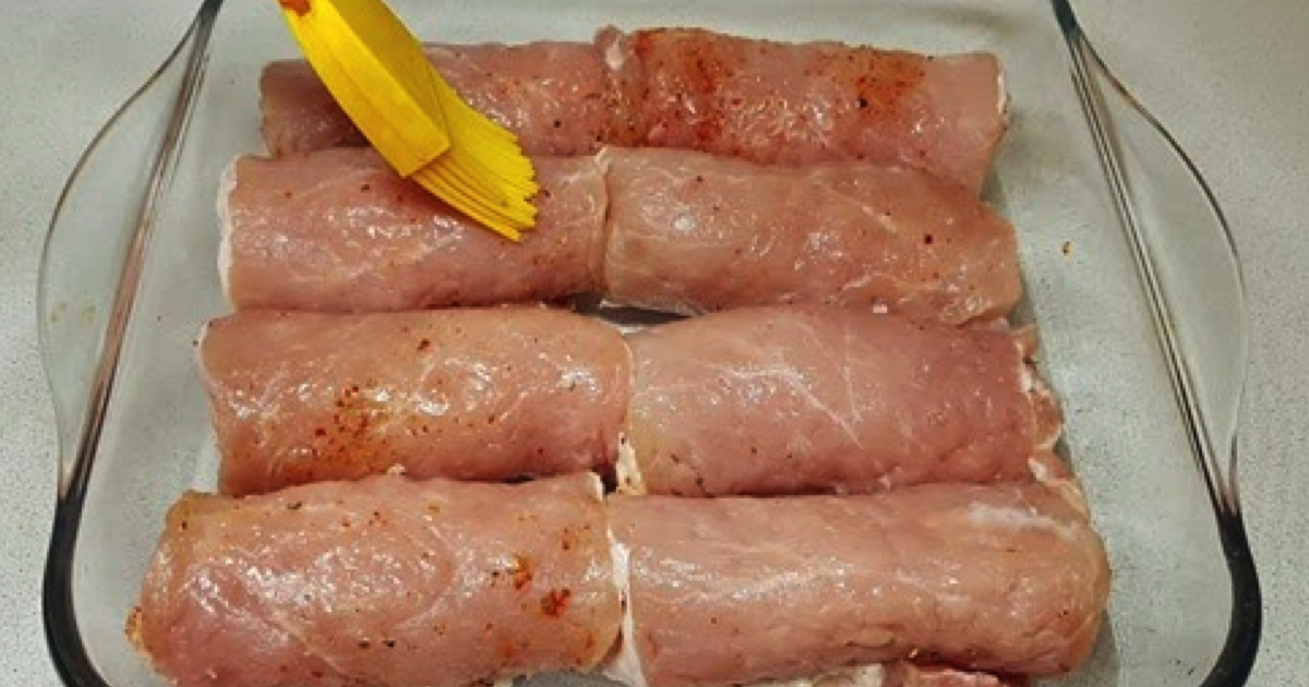 Wypełnij i zwiń wszystkie plastry mięsa w ten sam sposób. Wcierać olej w miseczkę z jenem i układamy przygotowane bułki obok siebie.