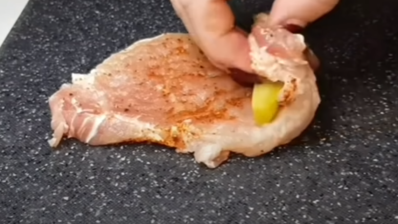 Pokrój mięso na plastry i stuknij tłuczkiem do mięsa. Każdy kawałek posyp solą , przyprawami i przyprawami do smaku z obu stron .