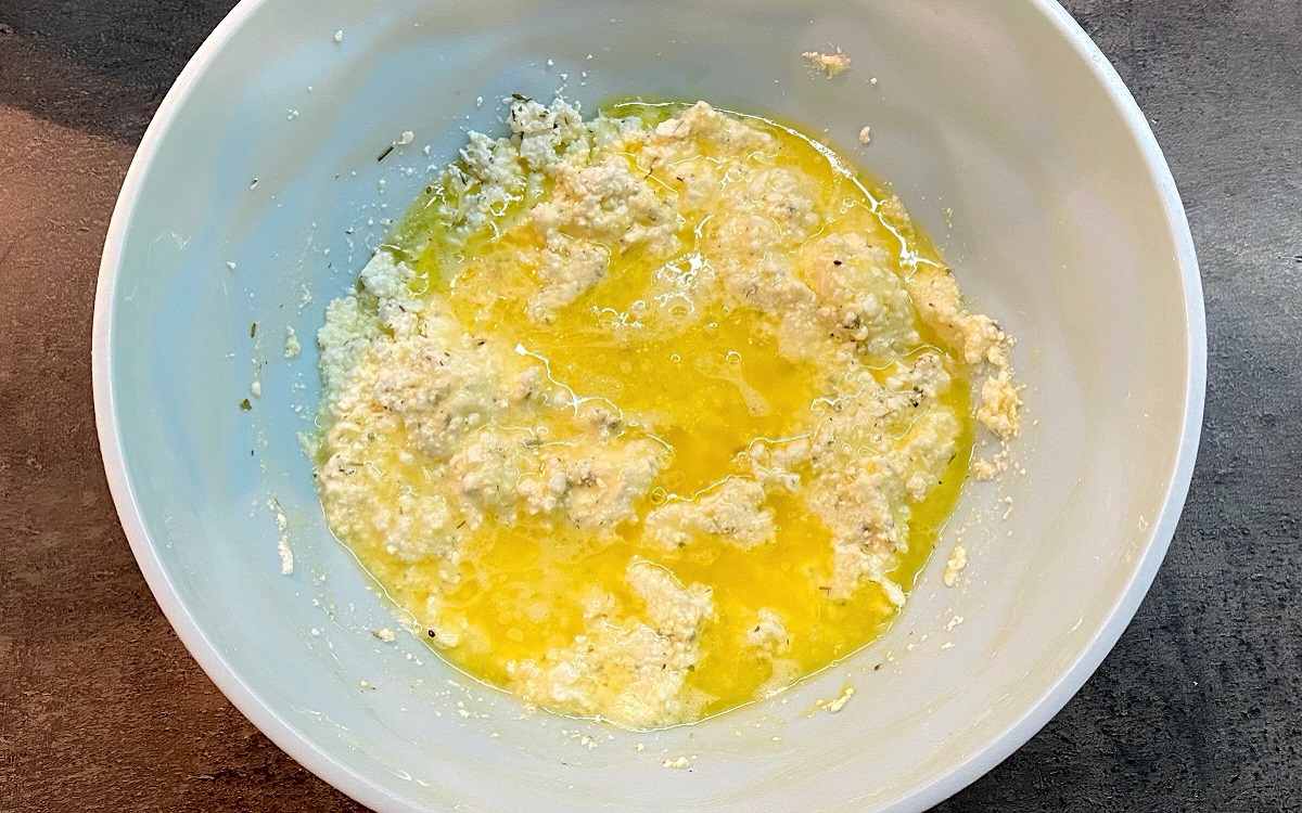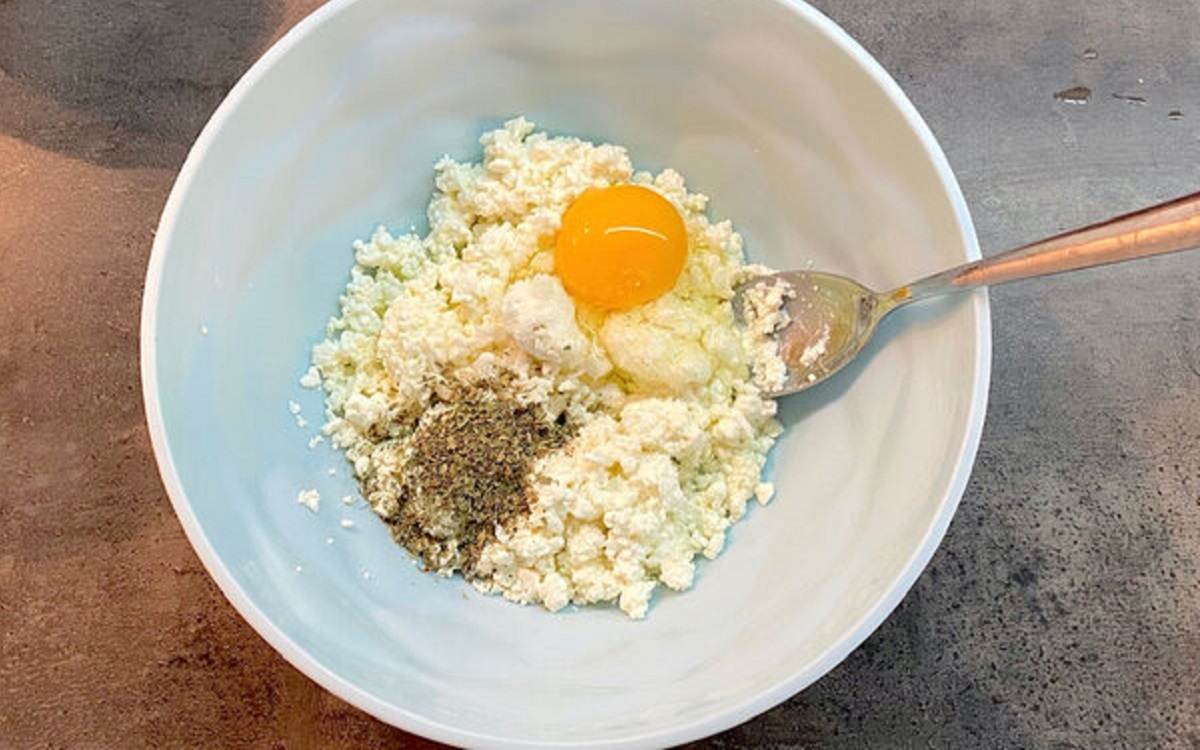 Wymieszaj twarożek, jajko i zioła prowansalskie.