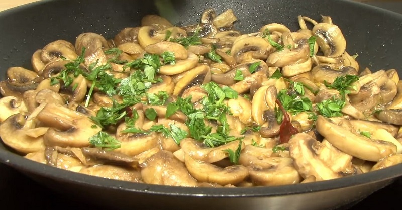 Grzyby, obrany czosnek i paprykę chili należy pokroić. Na dobrze rozgrzaną patelnię wylać oliwę z oliwek, aby zakryć jej dno. Najpierw na patelnię wrzucić paprykę, a po chwili czosnek i smażyć przez chwilę.