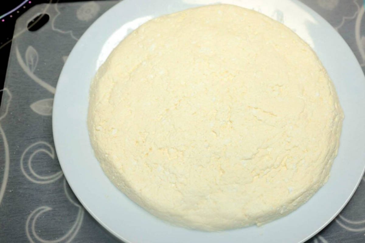 Następnie na dużym płaskim talerzu należy położyć otrzymaną masę i równomiernie ją rozprowadzić (tak, by była wysoka maksymalnie na 1,5 – 2 cm).