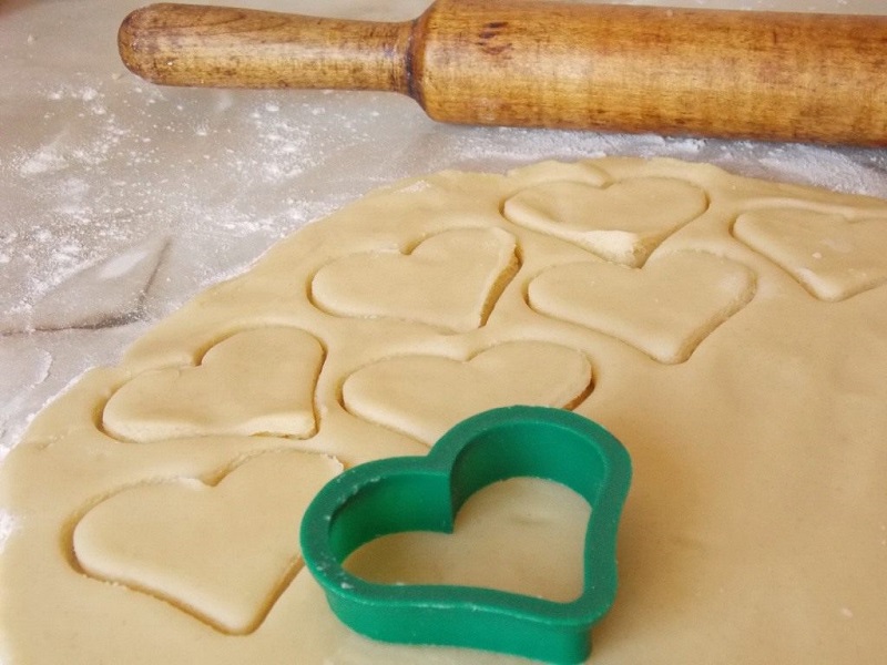 Będzie ono gotowe, kiedy przestanie nam się przyklejać do dłoni. Ciasto rozwałkowujemy na grubość kilku milimetrów. Wykrajamy ciasteczka nożem lub za pomocą foremek.