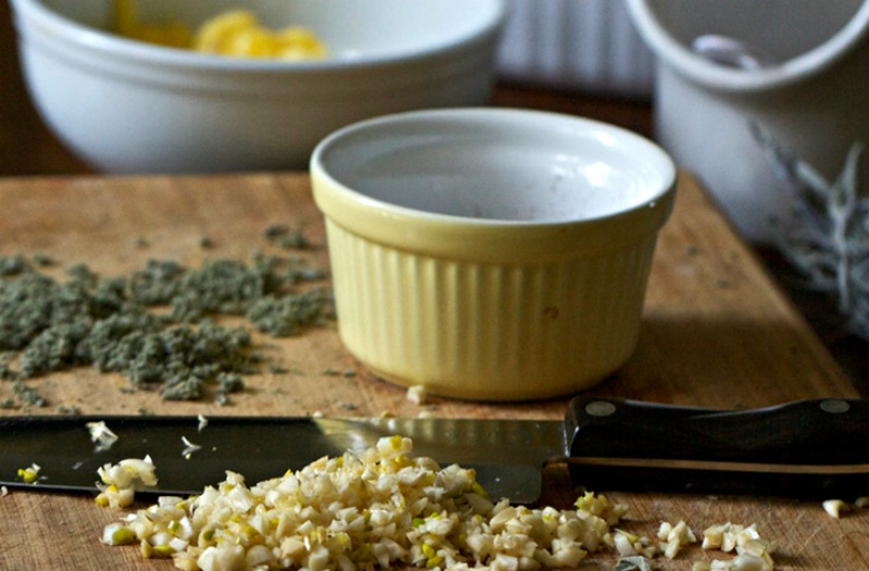 Siekamy parę gałązek kolendry, mięty, plasterek imbiru, ząbek czosnku, trochę papryczki chili i soki z limonki. Oprócz tego dodajemy miękkie masło i sól oraz pieprz do smaku. Nacieramy tą mieszanką mięso z obu stron i wkładamy je na ok. 4 godziny do chłodziarki.