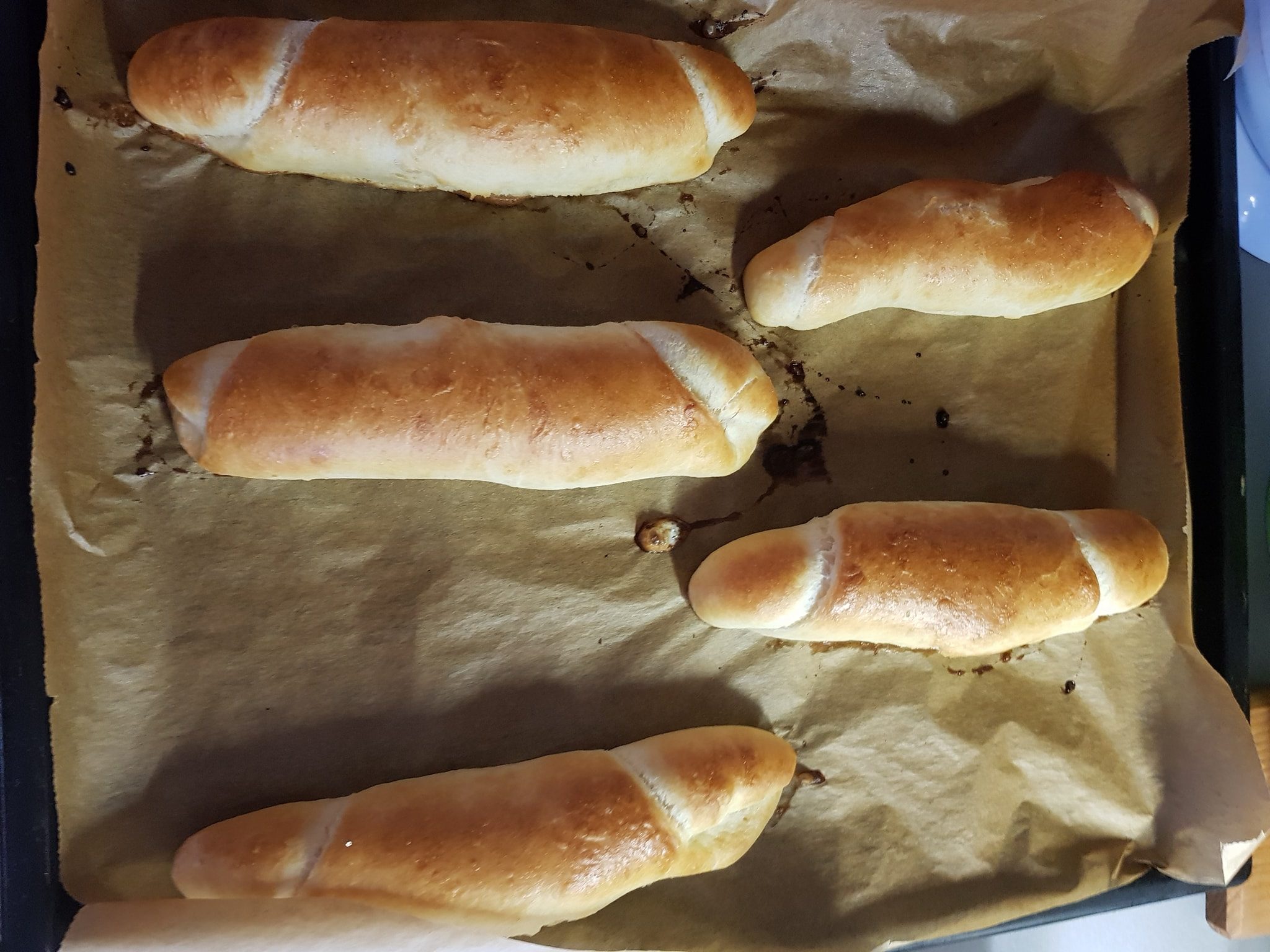 Po 40 minutach zdejmij folię z bułek i wstaw do dolnego piekarnika naczynie żaroodporne z wodą. Ułożyć bułki na blasze do pieczenia i umieścić ją na środkowej półce. Drzwi piekarnika powinny być natychmiast zamknięte. Piec bułki przez 10-15 minut lub do momentu, gdy będą złotobrązowe.
