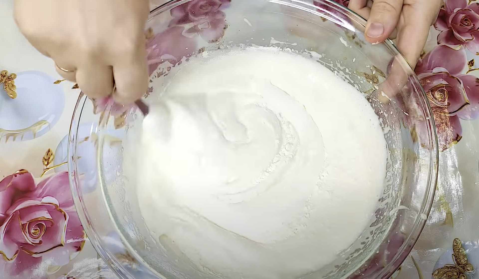 Aby przygotować ciasto wymieszaj w misce jajka razem z cukrem. Dodaj do tego wanilię. A następnie wymieszaj ręcznie przesianą mąkę razem z proszkiem do pieczenia.