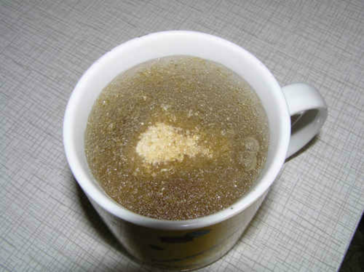4. Żelatynę i bulion mieszamy razem. Wcześniej przygotowane orzechy smażymy na suchej patelni.