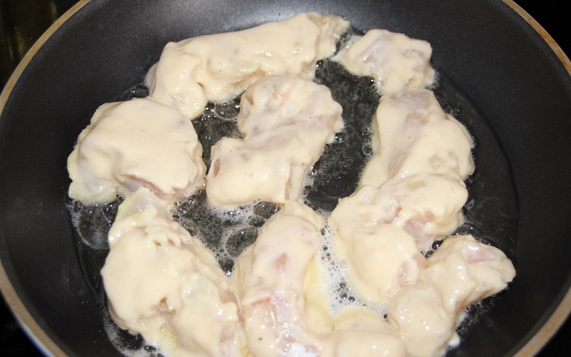 Ubij jajko z solą i przyprawami, a następnie dodaj skrobię. Całość dokładnie wymieszaj. Zaleca się smażyć filety rybne w tym cieście na bardzo dużym ogniu.