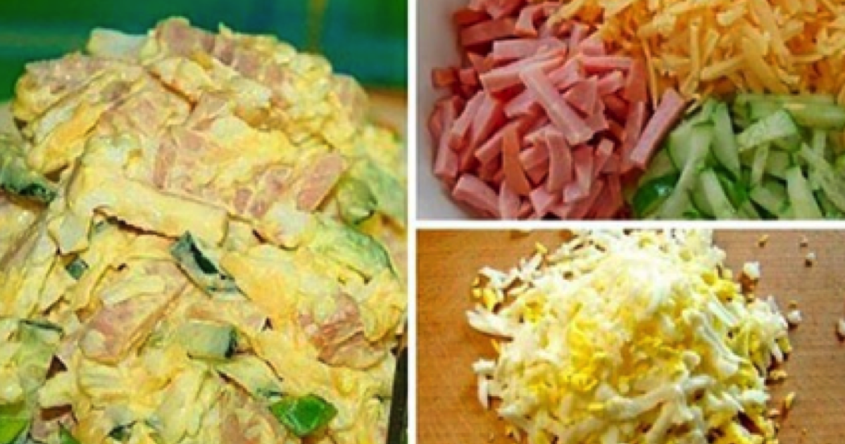Ogórki obierz i pokrój w paski. Szynkę również należy pokroić w ten sposób. Ser zetrzyj na tarce o dużych oczkach, aby się nie sklejał. Jajka ugotuj na twardo, a następnie obierz ze skóry i delikatnie zetrzyj na tarce, starając się, aby ich nie rozkruszyć.