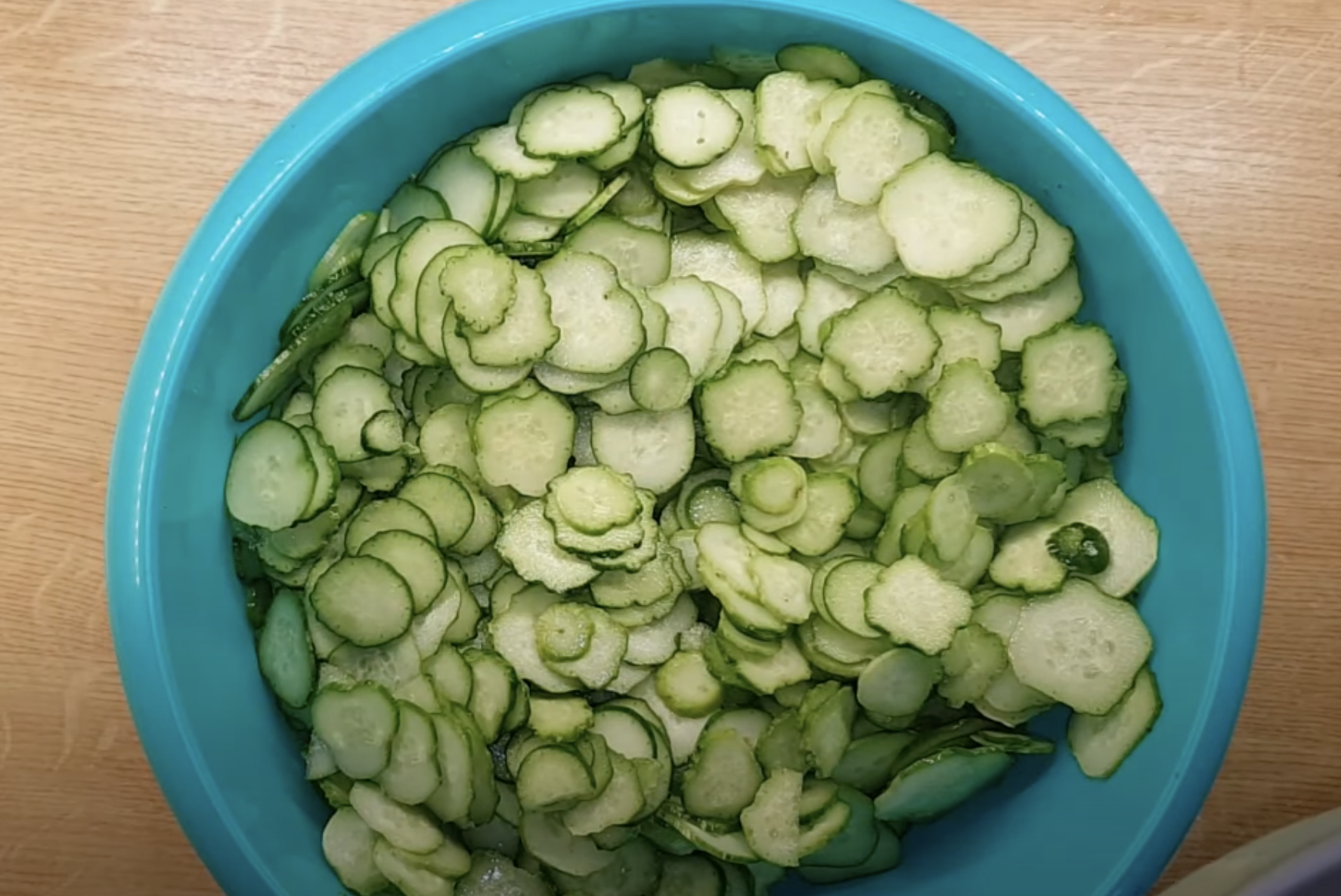 W dużej misce mieszamy wszystkie pokrojone warzywa. Dołączamy do nich cukier, ocet oraz mieszankę warzyw. Odczekaj, aż składniki puścią sok – najlepiej około 30 minut.