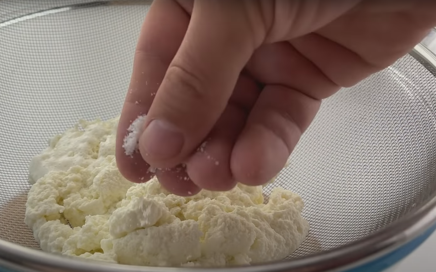 Zmniejszając płomień na palniku, tak aby tylko się tlił poczekaj, aż serwatka się oddzieli po czym odcedź ją i umieszczając na sitku, zostaw do momentu, aż nadmiar płynów spłynie. Przygotowując klasyczną wersję serka, przełóż całą masę do miski, odrobinę posól do smaku, a następnie mieszaj mikserem przez ok 1-2 minuty do uzyskania kremowej konsystencji.