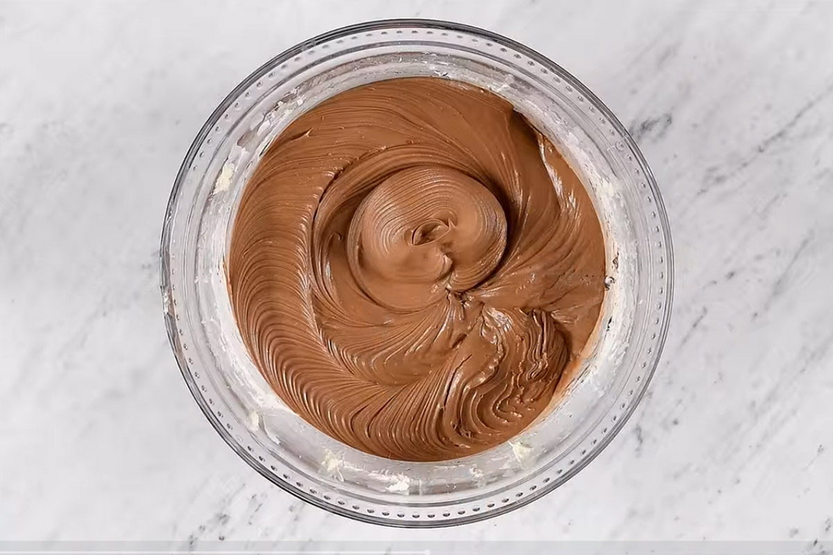 Cały czas miksując dodaj do niego cukier puder, a następnie roztopioną czekoladę. W oddzielnym naczyniu ubij 100 ml śmietany, a następnie delikatnie połącz ją z wcześniej ubitą masą.