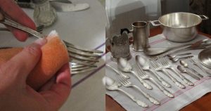 Aby przywrócić blask twoim miedzianym i srebrnym sztućcom, które ściemniały, zastosuj mieszankę octu, soli i sody oczyszczonej. Rezultat – nieskazitelny połysk – cię zaskoczy.