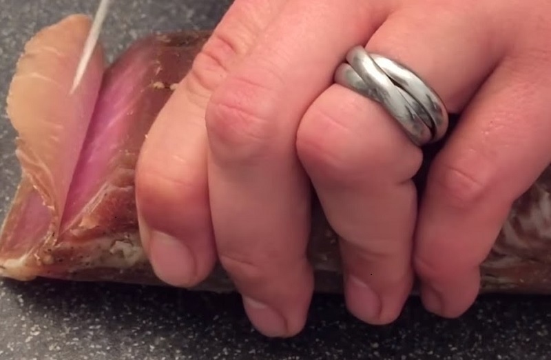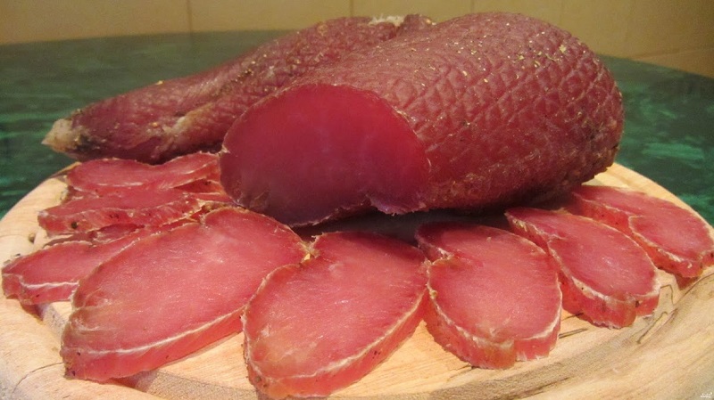 Wówczas mięso trzeba ponownie natrzeć mieszanką przypraw, tym razem bez soli. Po natarciu przyprawami mięso trzeba owinąć w suchą gazę i umieścić w lodówce na kolejne 2 tygodnie.