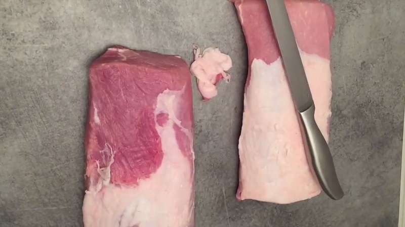 Pierwszym krokiem do przygotowania doskonałej suszonej wieprzowiny jest opłukanie i wysuszenie wieprzowiny za pomocą suszonych ręczników. Później należy wyciąć nadmiar tłuszczu.