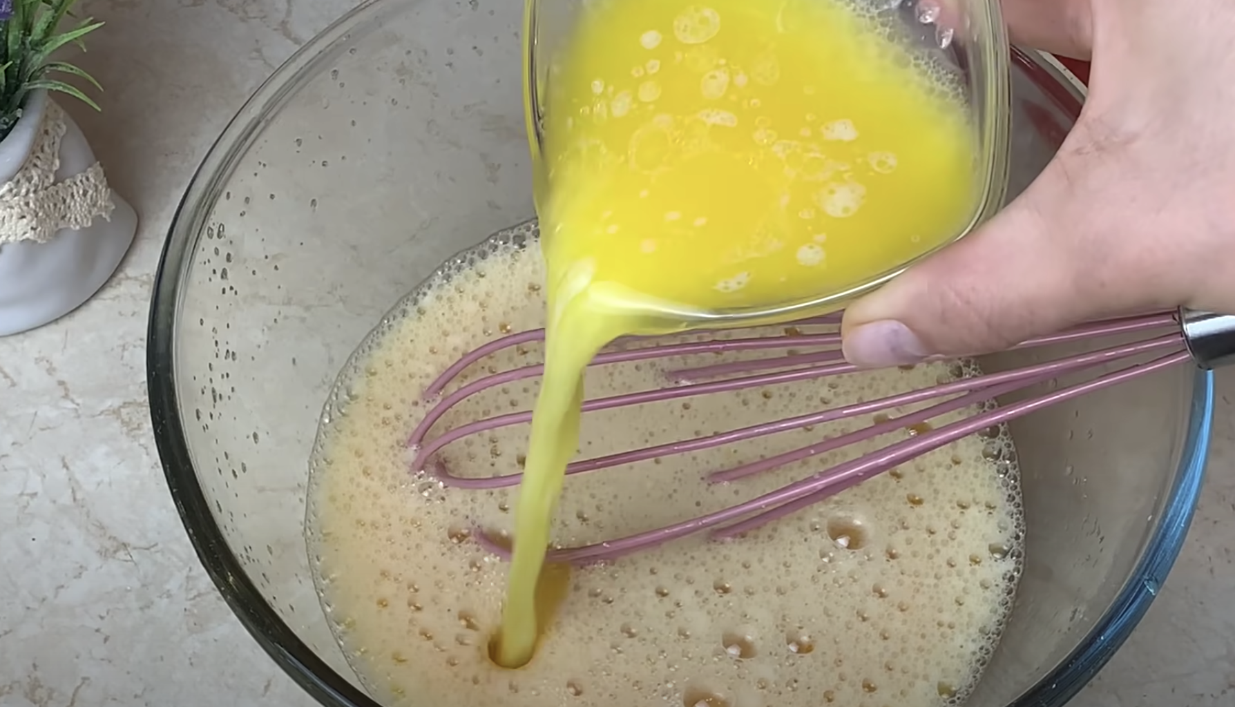 W dalszej kolejności dodaj roztopione masło i mleko.