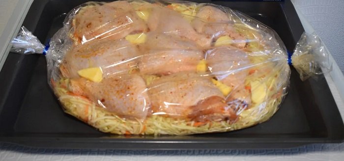 Całość włóż do piekarnika i piecz przez 45 minut w temperaturze 200 stopni. Po 45 minutach przetnij rękaw i piecz dalej, do momentu pojawienia się na udkach złotej skórki.