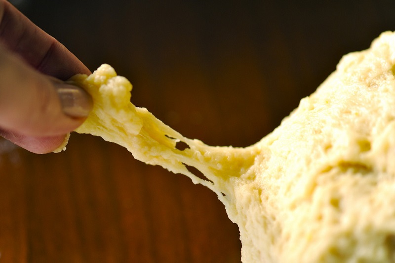 Zagnieć ciasto. Zagniatanie powinno zająć co najmniej 10 minut. Ciasto powinno stać się wystarczająco elastyczne i rozciągliwe, prawie jak guma do żucia.
